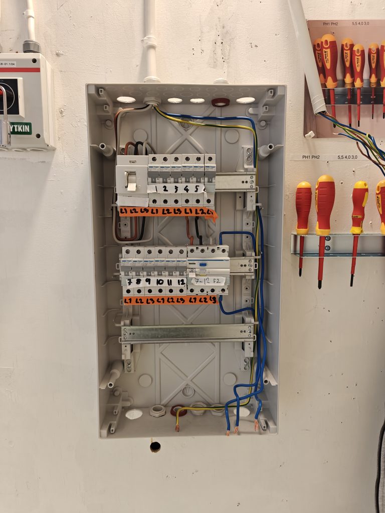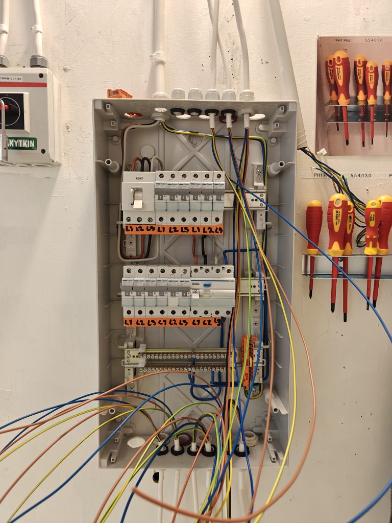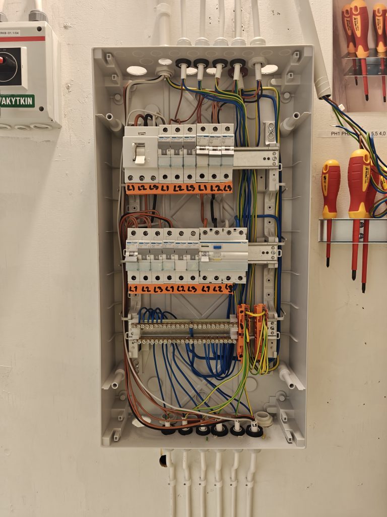 Tavoitteena oli luoda siisti ja selkeä johdotus, joka noudattaa standardeja ja helpottaa sekä huoltoa että tarkastuksia. Tämä työ oli kuitenkin vasta ensimmäinen vaihe, ja päätin tehdä sen myöhemmin uudelleen keskittyen erityisesti viimeistelyn parantamiseen.