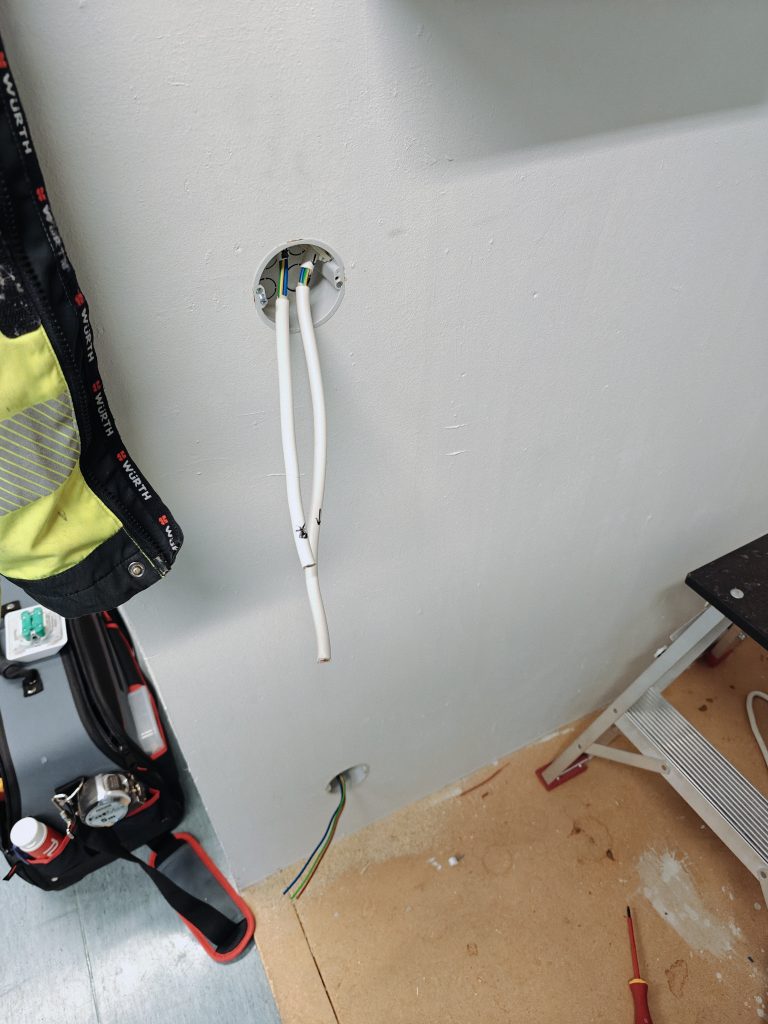 Kahden pistorasian, jakorasian ja kaapeleiden asennus sekä kytkentä keskukseen