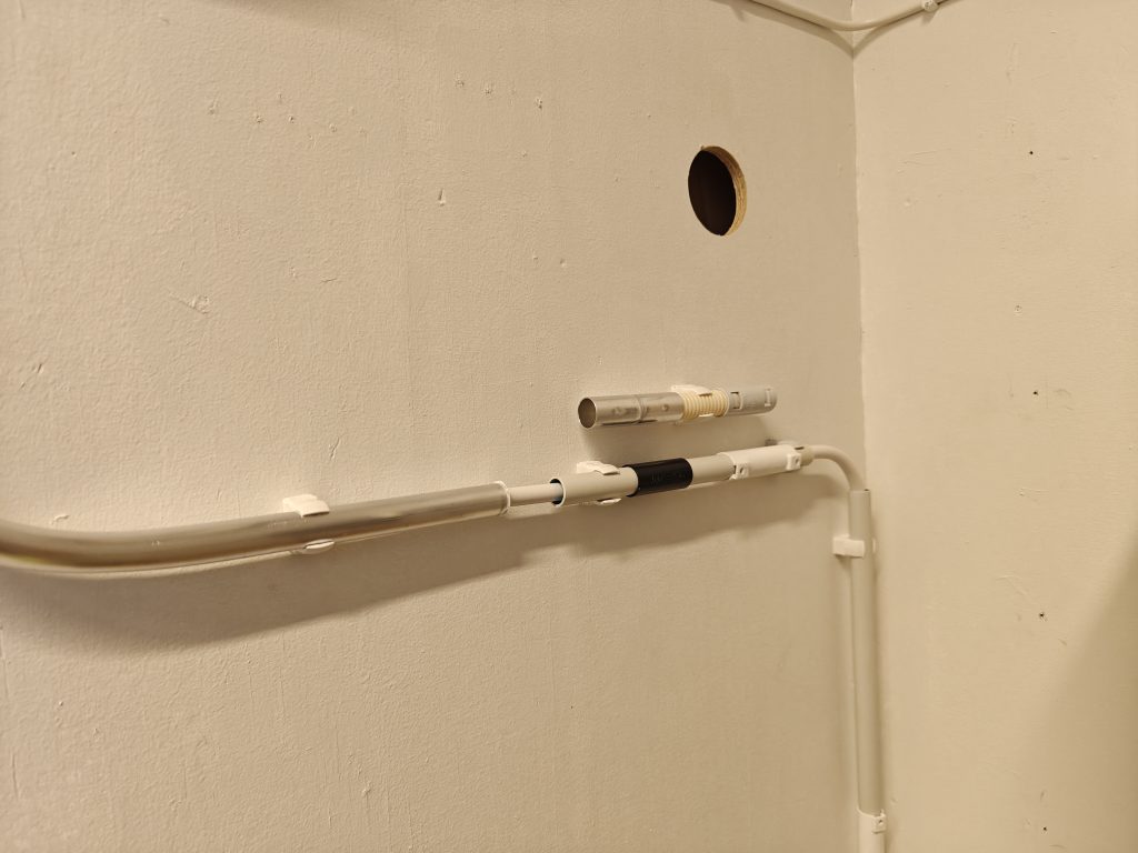 Tämän jälkeen suoristin putken reitin, minkä jälkeen kaapeli meni huomattavasti helpommin läpi. Tämä osoitti käytännössä sen, että putkireitit on suunniteltava huolellisesti, jotta kaapelin veto ei muodostu tarpeettoman vaikeaksi.