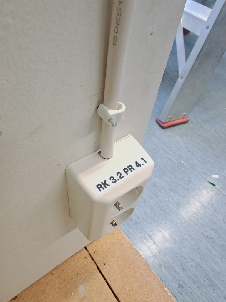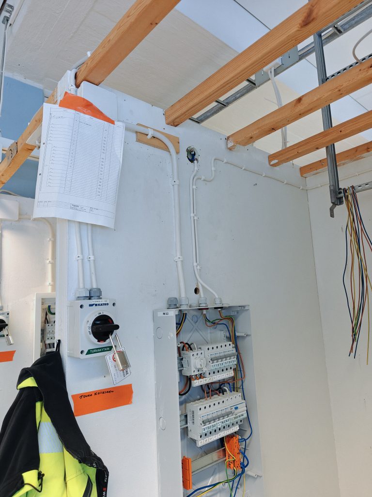 Sähkökeskuksen merkintä, asennuksen kytkeminen keskukseen ja pistorasioiden merkintä.